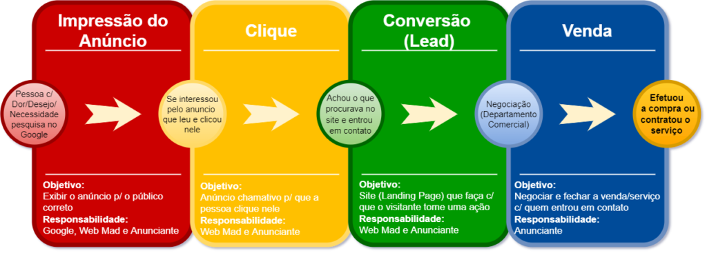 Abaixo veremos um fluxograma de vendas dentro da rede de pesquisa, que é a rede mais popular do Google.